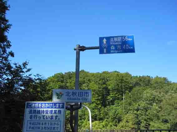 大覚野峠の最高地点を越えると北秋田市に入ります