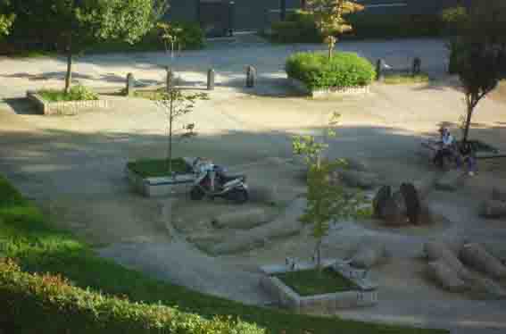翌朝、ホテルの窓から外の講演をみると… なんと公園で寝ている人がいます(@@;)