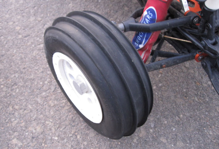 今回は前輪タイヤを砂用のトレッドのモノに変更、縦スリットなので直進性と操作性が良くなりそう