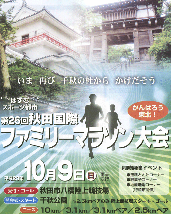 10月9日は 秋晴れの好天の中、第26回 秋田国際ファミリーマラソンに参加してきました