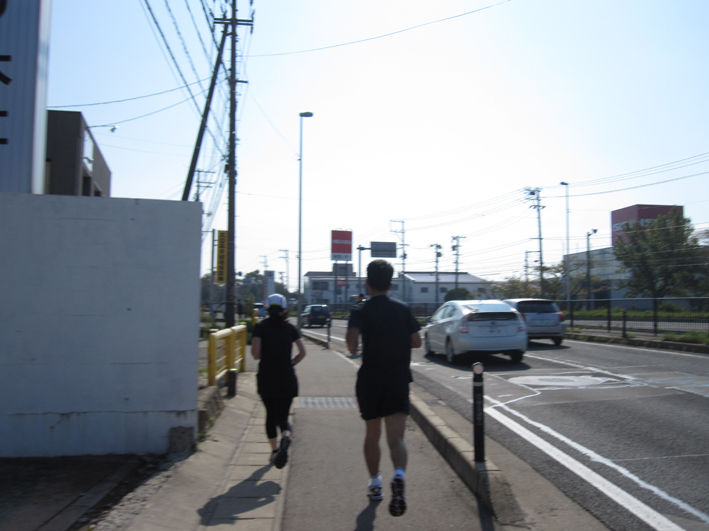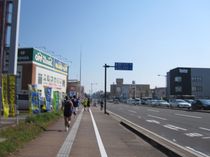 臨海十字路を右折して残り3キロ、山王大通りの歩道を走りゴールとなります