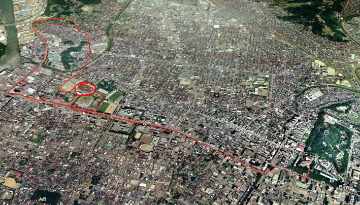 山王大通りに入ります 2.5キロほど進み八橋陸上競技場に入って行きますがトラックに入らず外周を回り