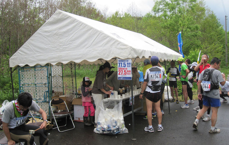 10時間32分経過 午後2時32分 77.5キロ の貝沢トンネル線エイドに到着しました