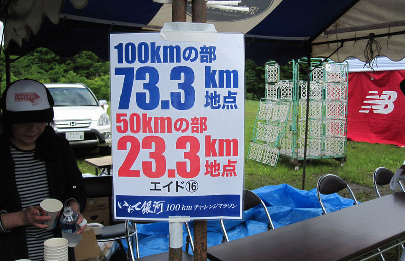 13時30分第16エイド沢内銀河高原ホテル前73.3キロ、昨年より18分早く着きました、残りは27キロ4時間半あるので、もう無理することはないです、といいたいところですが無理できるような余力はないです、