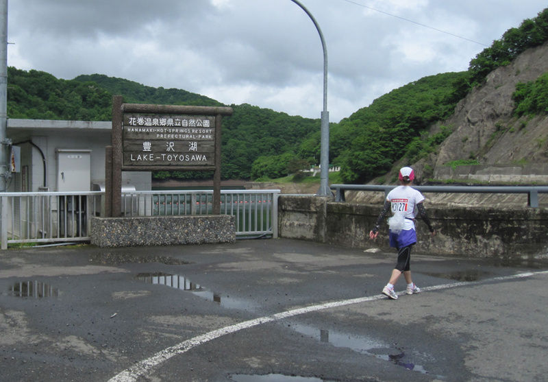 9時22分豊沢湖まできました。ここから4キロぐらいは小さいアップダウンが続くのでマイペースで行くだけです。雨は相変わらず降っていて疲れはあるのですが不思議なことに脚は何処も痛くなく気持ちだけはイケイケでした。